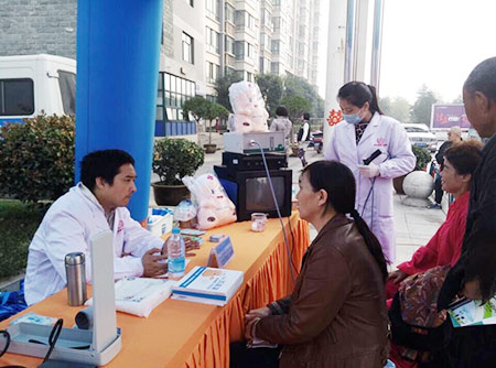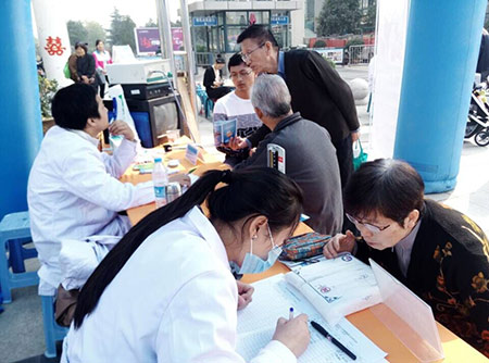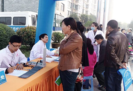 以西安新城中大耳鼻喉医院为代表的西安市多家医疗机构的100多名医务人员走上街头,为上千名市民进行健康查体和疾病宣传。
