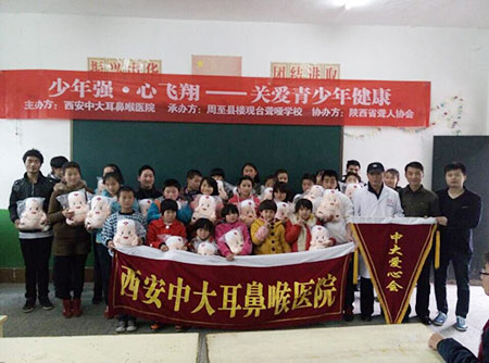 据了解,西安新城中大耳鼻喉医院一直致力于爱心公益活动,以传递爱心、回报社会为己任。曾先后开展“社区公益行系列义诊活动”、陕西2015“服务百姓健康行动”大型义诊活动、老年公寓送健康活动、“让爱有声—聋人公益救助”活动、“爱的呼唤—健康听力在中大”、“3月3爱耳日”系列活动等,先后被评为“”、热心社会公益事业优秀机构、陕西聋人协会定点医疗单位等。